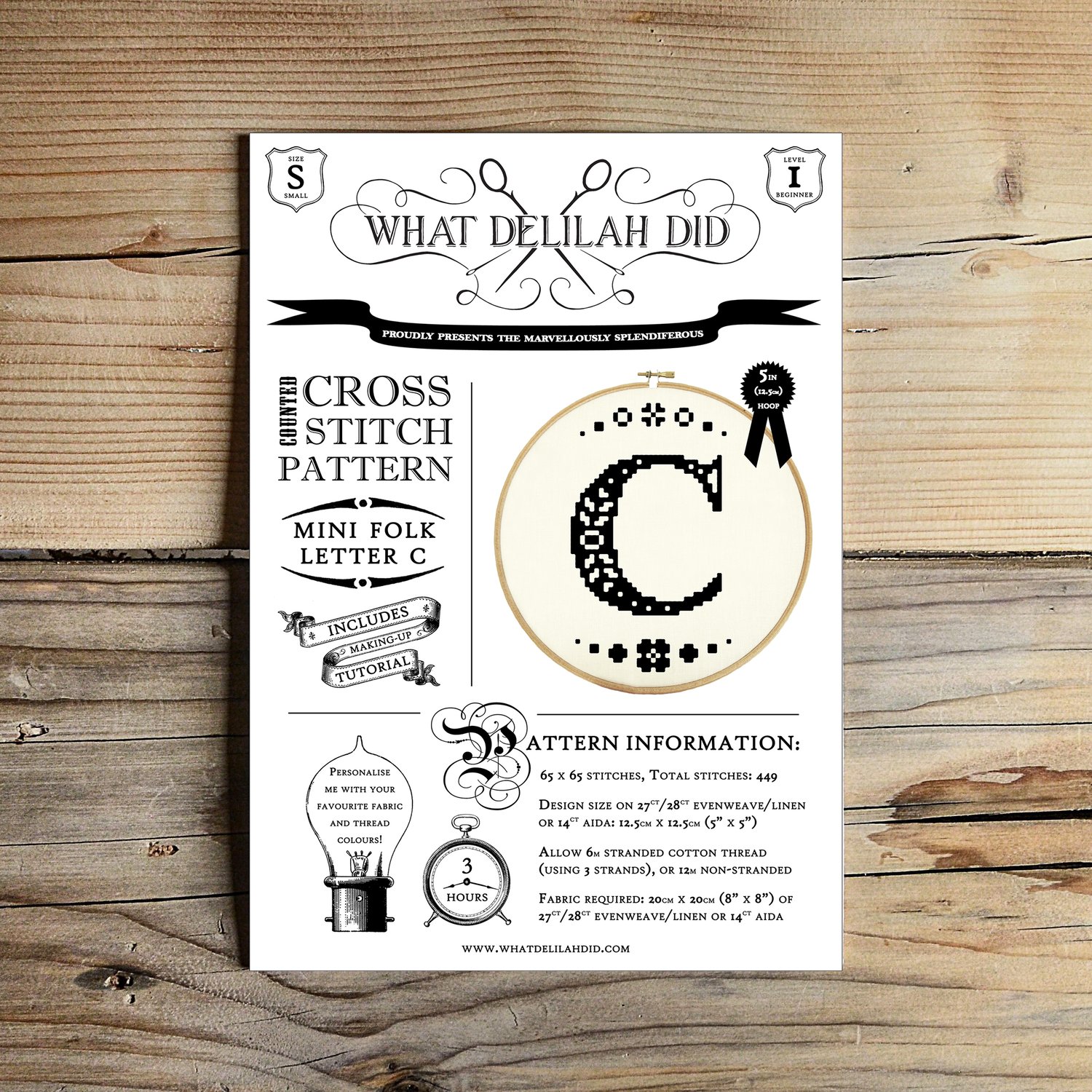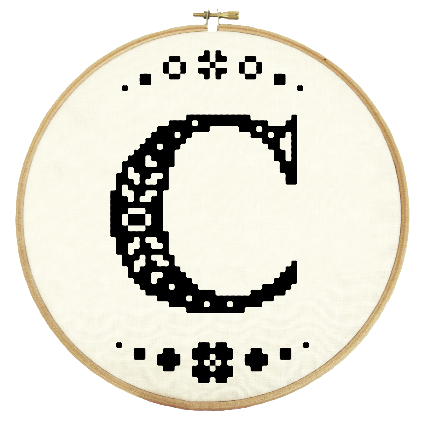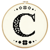 This listing contains the original cross-stitch pattern for the "Mini Folk Letter C" design. The letter is designed to fit neatly into a 5" wooden hoop when stitched onto 27/28-count linen or 14-count aida, and takes just a few hours to stitch, so is perfect for beginners or last-minute gifting.
