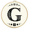 This listing contains the original cross-stitch pattern for the "Mini Folk Letter G" design. The letter is designed to fit neatly into a 5" wooden hoop when stitched onto 27/28-count linen or 14-count aida, and takes just a few hours to stitch, so is perfect for beginners or last-minute gifting.