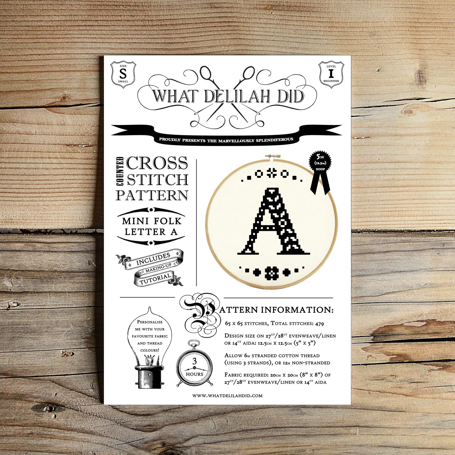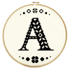 This listing contains the original cross-stitch pattern for the "Mini Folk Letter A" design. The letter is designed to fit neatly into a 5" wooden hoop when stitched onto 27/28-count linen or 14-count aida, and takes just a few hours to stitch, so is perfect for beginners or last-minute gifting.